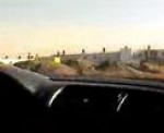 Rocket powered car flying off a ski jump