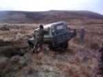 Old Landrover being winched out of pothole