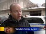 Some threw ice chunks, snowballs and beer bottles at police and the media. They smashed a police vehicle's windows, those of several other vehicles and damaged some storefront windows.