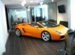 Nadia Russ' prints on display art Manhattan Motorcars showroom, 2008, Chelsea, New York City.