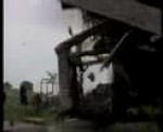 This clip shows the combined stunt rigs of pipe ramp with kicker (hidden by dressing on the road side) and Landrover modifications :- we fitted five-point stunt harnesses and added an extra roll cage and camera lashing for interior shots during the stunt. The vehicle was driven by a stunt driver and we worked in liaison with a Stunt Coordinator.