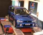 Subaru Impreza 4 on the rolling road at Dyno Demon, South Wirral